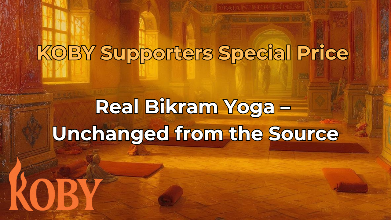 Jim Kallett teaching an actual Bikram Yoga class delivering the Dialogue as it should be delivered — 30 years of direct transmission behind every word. A master class in Dialogue delivery every time you listen. Inside your KOBY dashboard you'll find both full class recordings in audio — listen on any device, any time.
